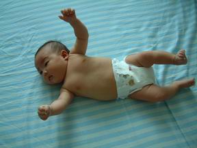 宝宝什么时候最最可爱?是完全光光的时候。每次给宝宝洗澡,都先要抱着没有穿衣服的宝宝到镜子前照照。所谓赤条条来赤条条去,光着身子的宝宝最显得纯真,纯真的真的象个下凡的小天使。