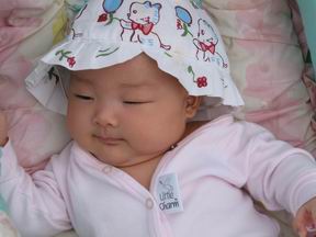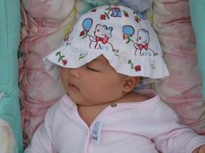 宝宝很胖,同样吃奶,她也不知道怎么就能比别的孩子都胖。她是我们认识的许多差不多大的孩子中最胖的一个,不仅是小胳膊小腿粗的象个健美运动员,脸也胖的往哪边睡哪边的肉就掉下来。看到宝宝的人都说我们养的好,宝宝看上去非常健康。希望我们的宝宝永远都健健康康。