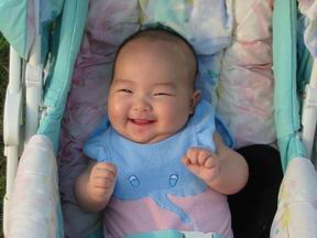 看见爸爸妈妈一脸惊讶,宝宝得意极了,喜笑颜开的说:嘻嘻,宝宝聪明,爸爸妈妈都被宝宝骗了呀。