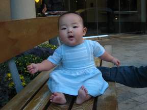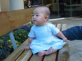 电梯由于火警关闭了,28层的高楼,让我们打消了走上去的念头,只好乖乖的在外面的花园等着。好在我们的小宝宝还是有很多动作,虽然等了将近一个小时,在给小宝宝拍照的过程中也觉得过得飞快。同时等在外面的还有许多等待开party的印度人,他们也饶有兴趣一起欣赏小宝宝的表演。