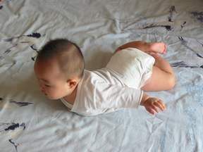 宝宝在没有学会爬的时候,一把她朝下放下,她就开始手脚翘起--开始飞了。一边飞一边嘴里还叫。可惜这个动作只拍下了这一张照片,现在宝宝已经学会爬了,再也不会出现这个动作了。