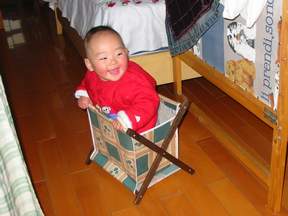 这个是我买的拿来装报纸杂志的布篓。在家里看丫丫的阿姨忽发奇想,把丫丫装进去,从客厅一路推到阳台。看到小篓子里的小人,我们乐到肚子痛,这个小傻丫也跟着莫名其妙的嘎嘎笑了。