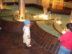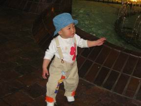 这是在离家很近的MALL里拍摄的。小丫丫站在她最喜欢的喷水和热气球前,不肯离去。
