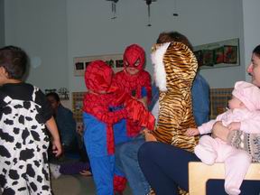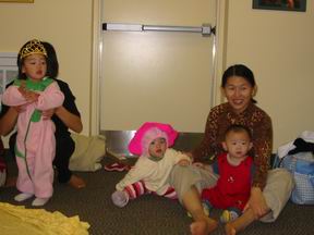每个星期五上午是MOTHER GOOSE的活动时间。有两个老师教我们各种儿歌,这天又刚好是万圣节,于是大家都穿戴起来,一起欢度节日。现场气氛非常热烈。