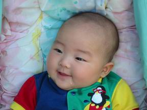 宝宝的神态真是有趣。这张怎么看怎么就是一个贪贪的小领导的样子。快4个月的宝宝开始爱玩口水。经常满嘴的泡泡,象一只小螃蟹。然后口水就顺着嘴角流啊流,还特别爱把湿湿的小嘴往你脸上蹭。你笑着躲,她还以为你逗她玩,高兴的咯咯笑着,嘴又上来了。